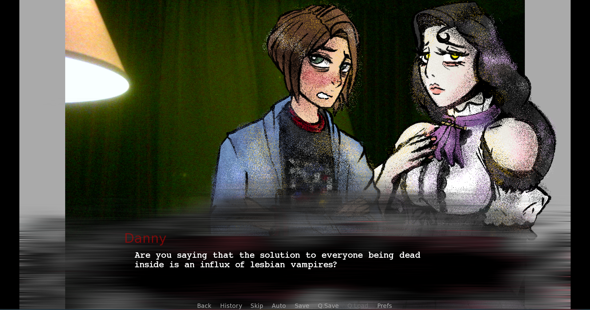 This game had me smiling a whole lot as I read it due to how much the story and its presentation clicked with me. The way the vampire tropes are intertwined with transness here felt especially good. Absolutely loved the art, too. Laura was definitely my favorite character - charming and seductive, no hypnosis needed!